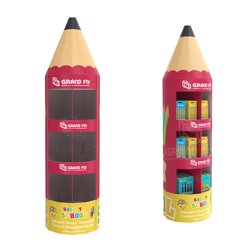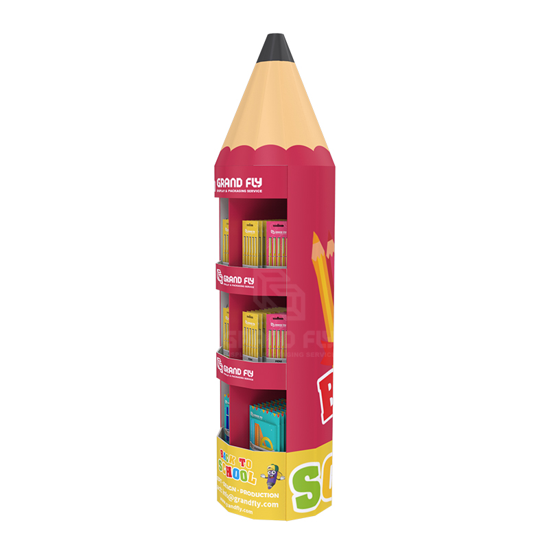 Custom Design Pencil Shape Round Cardboard Free Standing Displays for Pen